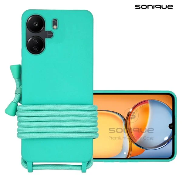 Θήκη Σιλικόνης με Κορδόνι CarryHang Sonique Xiaomi Redmi 13C 4G / Poco C65 4G – Τιρκουάζ