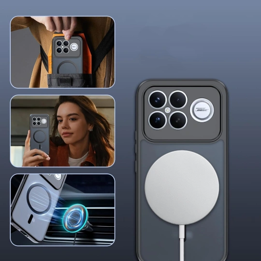 Ο υπερυψωμένος σχεδιασμός γύρω από την κάμερα και την οθόνη προστατεύει τα πιο ευαίσθητα στοιχεία από την επαφή με επίπεδες επιφάνειες. Ένας ενσωματωμένος μαγνητικός δακτύλιος εξασφαλίζει πλήρη συμβατότητα με την τεχνολογία MagSafe, επιτρέποντας γρήγορη ασύρματη φόρτιση και τη χρήση μαγνητικών αξεσουάρ. Οι ακριβείς εγκοπές εγγυώνται πλήρη πρόσβαση σε όλες τις θύρες, τα κουμπιά και τα ηχεία.