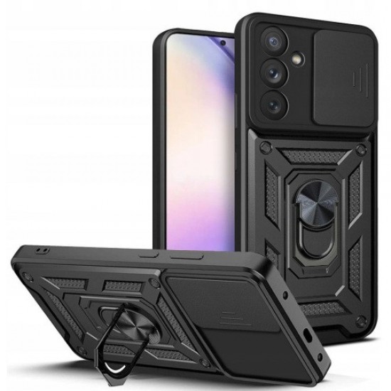 Η θωρακισμένη θήκη Camshield παρέχει εξαιρετική προστασία ολόκληρης της συσκευής από πτώσεις και γρατσουνιές. Η θήκη είναι ένας συνδυασμός εξαρτημάτων TPU και PC υψηλής ποιότητας. Η εύκαμπτη και απορροφητική πολυουρεθάνη και το ανθεκτικό στην τριβή πολυανθρακικό δημιουργούν αξιόπιστη υβριδική προστασία για τη συσκευή σας. Εξοπλισμένο με ένα απλό και βολικό ρυθμιστικό που μπορεί να κλείσει ανά πάσα στιγμή. Ένα πρακτικό κάλυμμα θα προστατεύσει τον φακό από απροσδόκητη ζημιά. Ο περιστρεφόμενος δακτύλιος 360 μοιρών είναι τέλειος ως βάση για παρακολούθηση ταινιών και θήκη για δάχτυλα για να κρατάτε με ασφάλεια το τηλέφωνο στο χέρι σας.