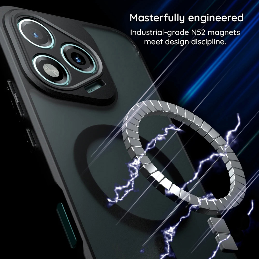 Ενσωματώνει 38 μαγνήτες βιομηχανικής ποιότητας N52, τοποθετημένους σε απόλυτα βαθμονομημένο μαγνητικό δακτύλιο, προσφέροντας άψογη συμβατότητα με όλα τα αξεσουάρ MagSafe και σταθερή, γρήγορη ασύρματη φόρτιση.